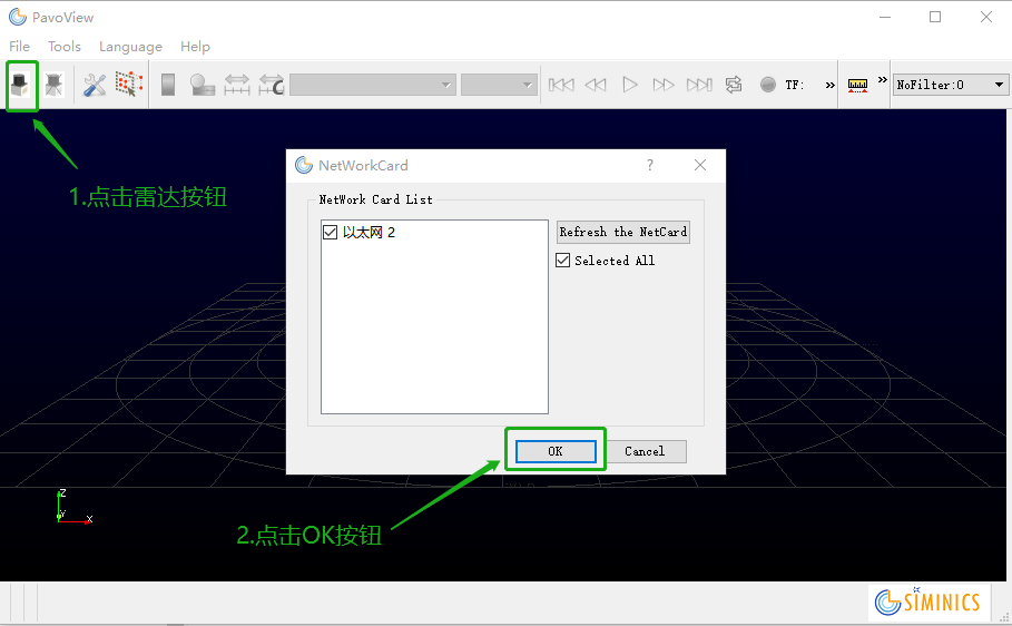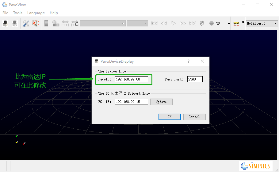 可用工具包中的PavoView.exe程序查看并修改星秒雷达IP;