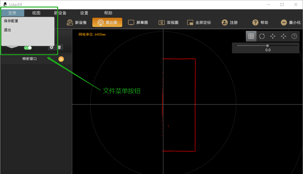 帮助:点击帮助按钮会弹出帮助界面,有关于软件的各种各种说明及雷达校准步骤。